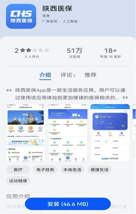 (1)手機應用商店搜索下載“陜西醫保APP”