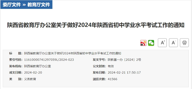 2月21日記者從陜西省教育廳獲悉,2024年陜西省初中學業水平考試工作相關安排出爐,對考試對象、考試科目、各科目試卷滿分值及考試時長等做了明確。突出學生綜合素質的考查,并通過優化命題形式,引導減少死記硬背和“機械刷題”。任何單位與個人不得根據初中學業水平考試成績給學校和學生排隊或以任何形式公布名次。