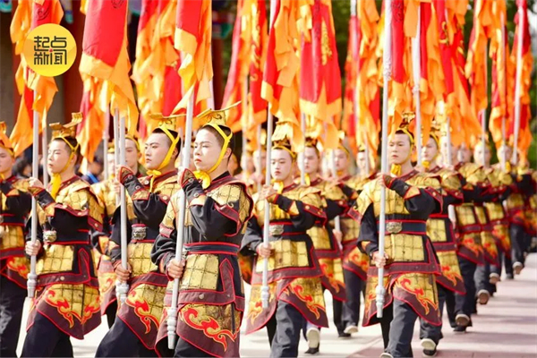 今年公祭典禮以“鑄牢中華民族共同體意識(shí) 奮進(jìn)中國(guó)式現(xiàn)代化新征程”為主題,共有九項(xiàng)儀程:第一項(xiàng),全體肅立、擊鼓鳴鐘;第二項(xiàng),唱《黃帝頌》;第三項(xiàng),敬獻(xiàn)花籃;第四項(xiàng),恭讀祭文;第五項(xiàng),向軒轅黃帝像行三鞠躬禮;第六項(xiàng),樂(lè)舞告祭;第七項(xiàng),龍飛中華;第八項(xiàng),瞻仰軒轅殿,拜謁黃帝陵;第九項(xiàng),種植橋山柏。
