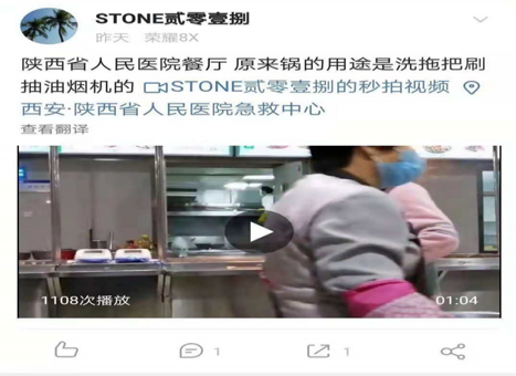 西部網訊(記者 楊勇飛)11月5日下午,網友“STONE貳零壹捌”在陜西省人民醫院餐廳就餐時看到醫院餐廳清潔人員用灶臺上的鍋清洗拖把,由于當時餐廳還有人在餐廳……