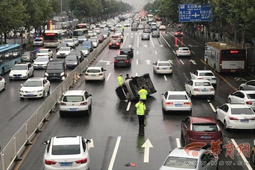 9月19日上午7時許,西安市太白南路,一輛私家車側翻在由南向北的快車道上。此時正是早高峰,4名交警在現(xiàn)場進行交通疏導。由于路面濕滑,加上駕駛人操作不當,造……