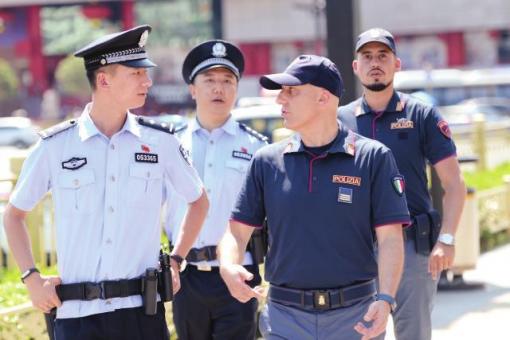 中意警員在鐘樓盤道聯合巡邏 新華社發 兩位意大利警察將與西安民警一起,開展聯合巡邏 “真帥氣1昨天早上,在西安永寧門廣場,兩名意大利警察的精彩亮相,吸……