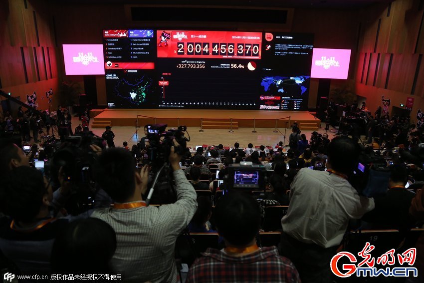 2014年11月11日凌晨,杭州,天貓平臺“雙十一”正式開啟,在第2分53秒,交易額突破10億元。第一分鐘交易額達到5451萬,其中68%來自無線端。自2009年起,由天貓發……