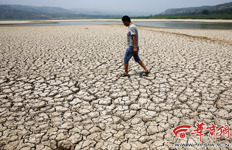 昨日,三原縣飲用水源馮村水庫水量嚴重不足,庫底泥土已經干裂,目前縣城全部采用地下深井供水 記者鄧小衛攝今年進入主汛期以來,陜西省遭受嚴重的伏旱。7月下旬……