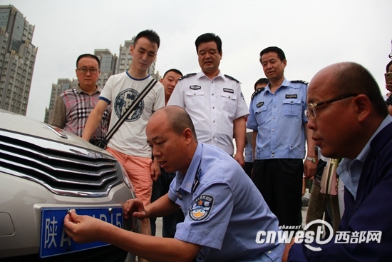 圖注:西安市車管所民警為第200萬(wàn)輛機(jī)動(dòng)車掛牌西部網(wǎng)訊(記者 孫鵬) 截止7月3日,西安市全市機(jī)動(dòng)車保用量突破200萬(wàn)輛大關(guān)。上午10時(shí)左右,交管部門在車管所舉行“第……