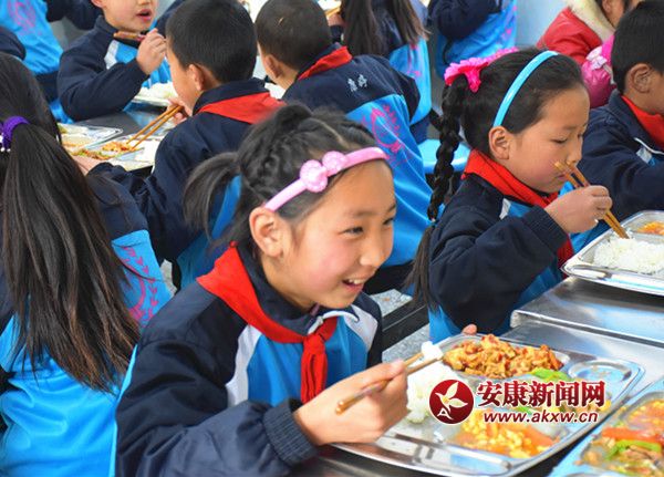 孩子們在新食堂里愉快地品嘗著第一頓營養餐