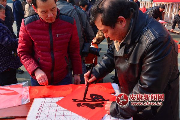 省書法名家寒冬送“福”到白河