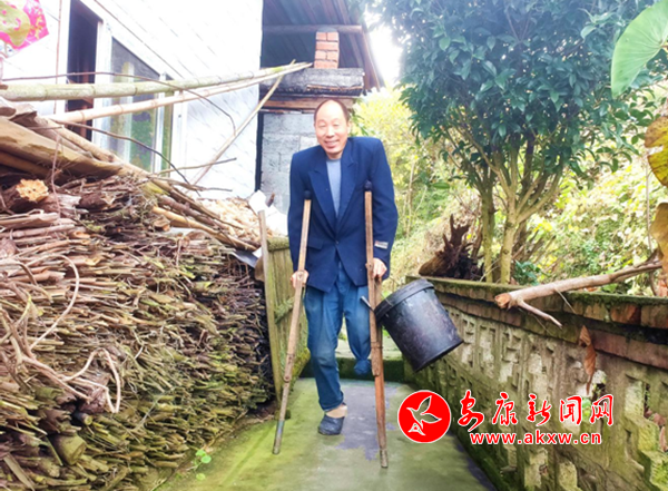 本網訊 (通訊員 商曼 劉靜)立冬節氣到來,氣溫逐漸下降。早晨還來不及收拾,戴西春便拄著拐杖,拌豬食、喂豬仔,動作嫻熟。看到我們來,他連忙單腿跳著進屋拿板凳,招呼我們坐,滿臉笑容。