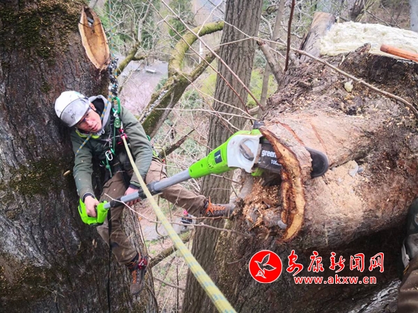 “在修復期間,我們聘請了國內最頂尖的攀樹師、修剪師,攀登到樹頂,對樹體的枯枝、病腐枝進行了清理,然后對所有樹洞存在腐爛的地方,使用消毒滅菌的藥物進行處理,對影響樹體生長,可能造成二次傷害位置的漏洞、樹洞進行了封堵。我們使用的攀樹、修剪技術目前在我們陜西省內屬于首次的應用,通過這次修剪之后讓陽光照進傷口,使古樹再次萌發了蓬勃生長的動力”,白河縣林業局自然保護地管理辦公室主任肖培軍介紹說。Czd安康新聞網