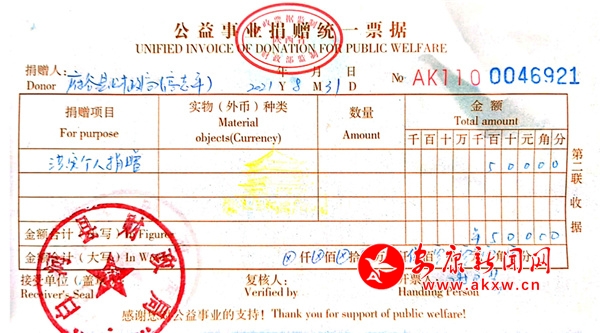 本網(wǎng)訊(通訊員 李玉興)近日,持續(xù)的強(qiáng)降雨導(dǎo)致白河縣境內(nèi)滑坡、泥石流等自然災(zāi)害頻發(fā),道路中斷,導(dǎo)致數(shù)以千計(jì)的群眾被迫轉(zhuǎn)移。災(zāi)情不僅牽動(dòng)著每一名白河人的心,也讓一位遠(yuǎn)在陜北的“老朋友”記掛萬分。8月31日一早,白河縣民政局救災(zāi)捐贈(zèng)專戶上收到一筆來自陜西府谷縣的特殊捐款,這也是發(fā)生暴雨災(zāi)情后收到的第一筆個(gè)人捐款。XiE安康新聞網(wǎng)