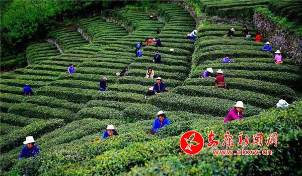 綿延的茶葉梯田坡坡相偎,縷縷茶香沁人心脾,碧綠的茶園如同飄揚的絲帶,沿著平坦開闊的“宋大公路”鋪開,在白河縣宋家鎮(zhèn)這抹綠色不僅是色彩,更是村民增收致富的法寶。按照“茶旅一體”的發(fā)展思路,該鎮(zhèn)建成標(biāo)準(zhǔn)化茶園2.5萬畝,力將茶區(qū)變景區(qū)。2021年,宋家鎮(zhèn)被農(nóng)業(yè)農(nóng)村部表彰為“一村一品”示范村鎮(zhèn)。