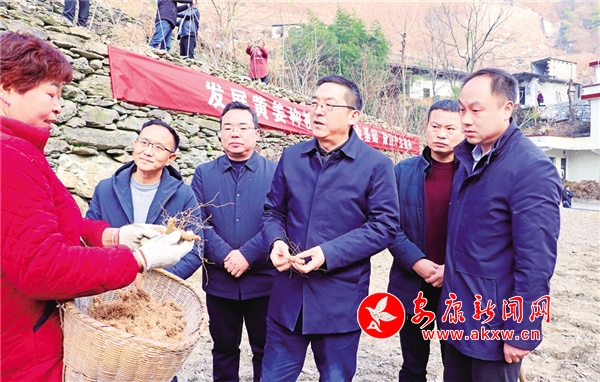 縣人大常委會主任何益新(前排左一)調研督辦縣政府及其相關單位辦理《關于推進木瓜產業持續發展的議案》情況