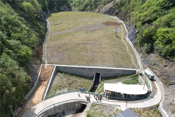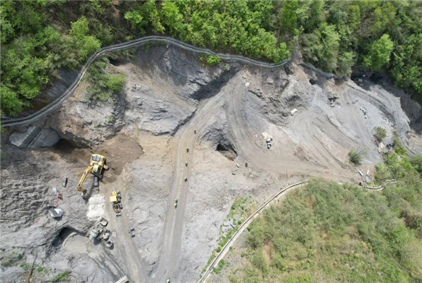 ↑白河縣里端溝(二期)重金屬污染綜合整治工程項目(4月9日攝,無人機照片)。