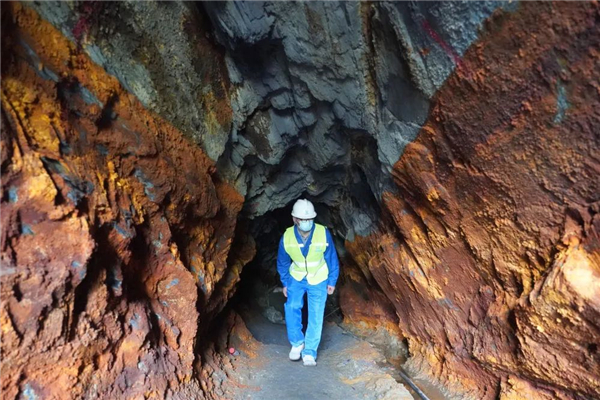 ↑4月9日,工作人員在白河縣卡子鎮(zhèn)鳳凰村一處廢棄硫鐵礦洞內(nèi)勘查。