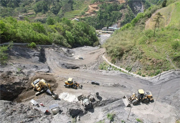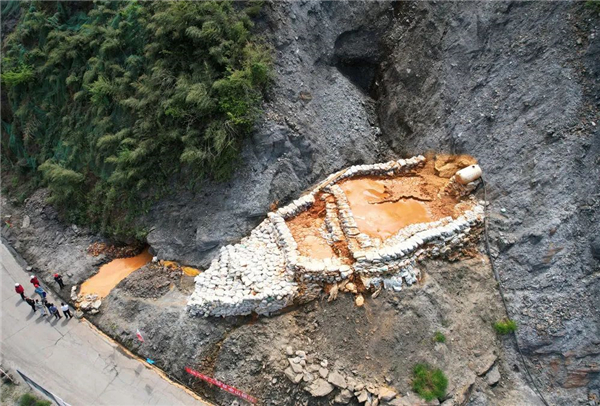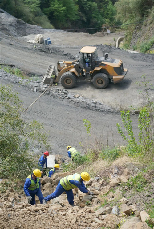 ↑4月9日,在白河縣卡子鎮(zhèn)鳳凰村一處廢棄硫鐵礦污染治理施工現(xiàn)場,工人在清理排洪渠。
