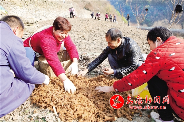 群眾搶抓春耕時機,在地頭挑選黃姜種子準備種植
