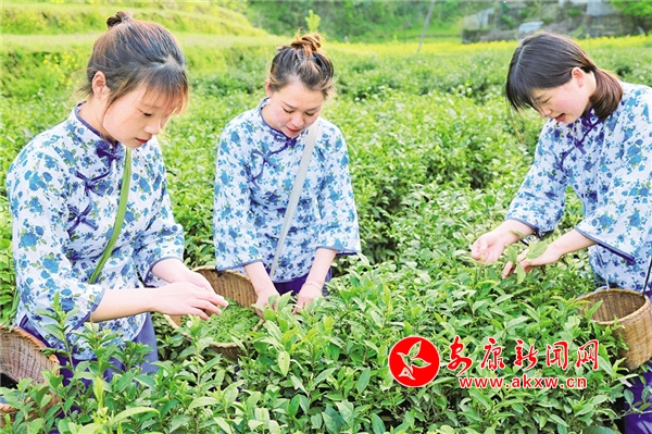 茶葉梯田坡坡相偎,縷縷茶香沁人心脾。白河縣茅坪鎮五峰茶葉種植基地里,千余名茶農手指翻飛,爭先采摘鮮葉,山水交織間,展開一幅幅欣欣向榮的美麗鄉村新畫卷。