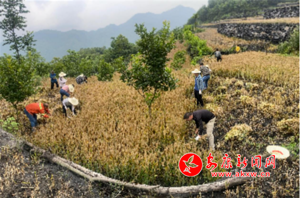 “放心吧,有我們幫忙,今兒上午就能把你家這小麥收完!”帶隊的鎮組織委員周漢梅笑著勸慰老陳。身形嬌小的她干起活來毫不含糊,動作麻利極了。只見她左手攏麥,右手不停地揮動鐮刀,在不間斷的“刷刷刷”聲中,一片片小麥應聲倒地,老陳則是用事先打好的“約子”將被“放倒”的小麥捆成“麥個子”,待收割完后齊齊運回家晾曬。