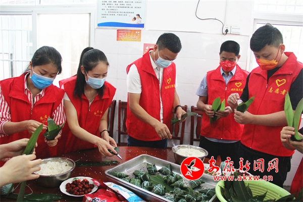 △ 構朳鎮組織志愿者到敬老院給老人們包粽子