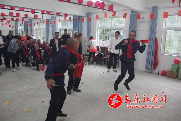 △ 構朳鎮組織敬老院的老人們做趣味游戲