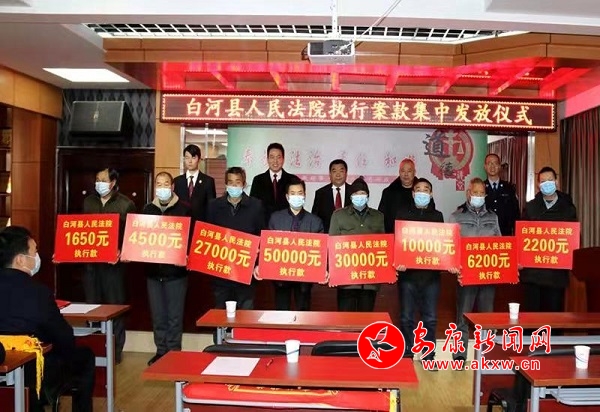 本網訊(通訊員 黃振霞)12月17日上午,白河法院舉行執行案款集中發放活動,現場兌現17起案件,涉及執行標的1431.64萬元,全部通過執行案款系統發放。其中涉白河……