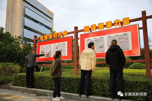安康高新區在布設“閱報欄”的基礎上,明確了創文辦為管理部門,初步制定了日常管理規范,切實做到《人民日報》《經濟日報》《陜西日報》《安康日報》等黨報黨刊在第一時間換新、破損在第一時間更換,確保把黨的聲音在第一時間傳達到千家萬戶,把黨的溫暖及時送到每個角落,進而匯聚起加快建設西北生態經濟強市的磅薄力量。VgH安康新聞網