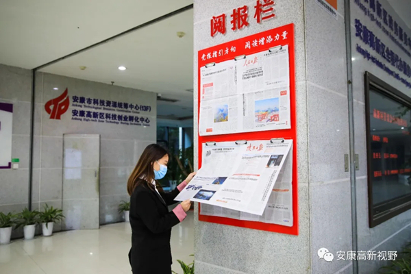 (駐站記者在高新區新的社會階層人士融媒體服務空間“閱報欄”閱讀黨報黨刊)VgH安康新聞網