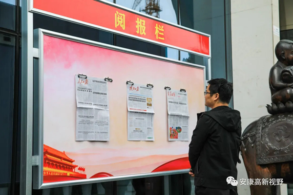 日前,在安康高新區的市民廣場、政務中心、公園綠地、大眾餐廳、居民社區等人口密集區域,承擔著“黨報指引方向,閱讀增添力量”宣傳教育功能的一個個“閱報欄”,讓廣大市民在享受物質生活的同時更具精神追求,成為創建全國文明城市中一道道亮麗的風景。VgH安康新聞網