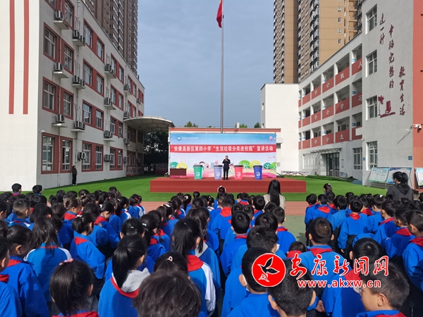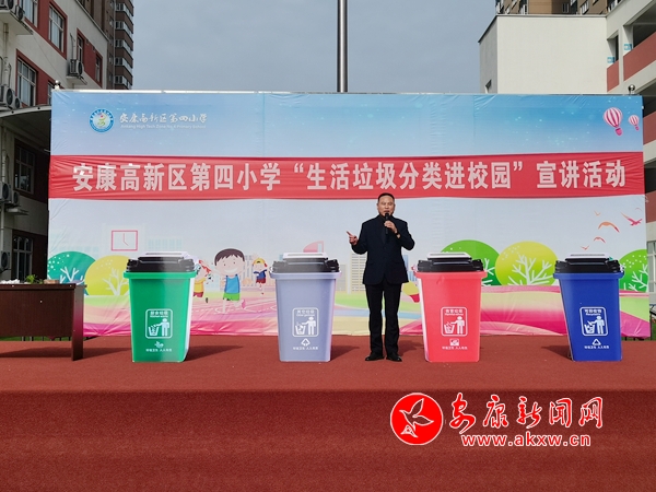 本網訊(通訊員 王宗濤)“同學們,我們是環境保護小天使,我們要讓山更青,水更綠,天更藍,我們生活的家園更美麗!我們應該養成垃圾分類的好習慣。”4月9日上午,春陽燦爛的安康高新區第四小學的操場上,生活垃圾分類“進校園”宣講活動火熱進行中。Qzz安康新聞網