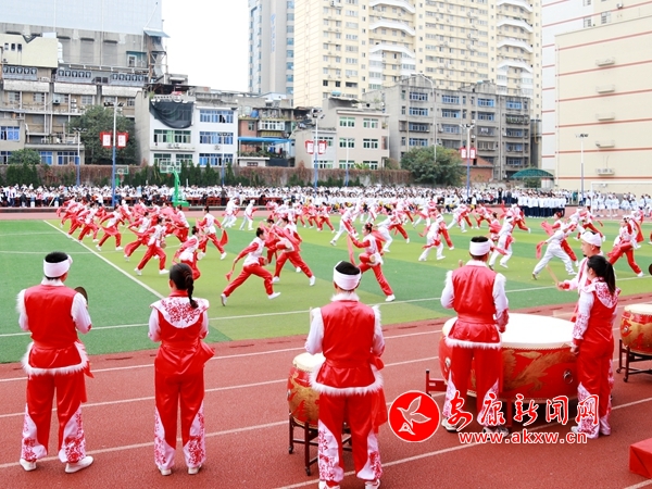 隨后,同學們進行了啦啦操、集體舞、腰鼓、武術表演。精彩紛呈、青春活力的文體表演結束后,運動項目比賽隨即展開,田徑場上加油聲此起彼伏,運動員們競相比拼,打破了多項校運會記錄,展現了更高、更快、更強的體育精神。