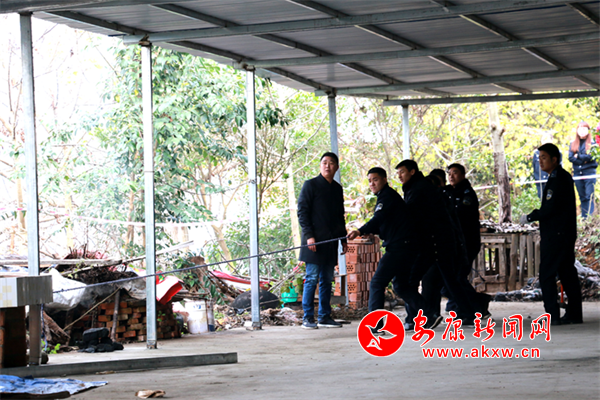 11月21日,違規彩鋼棚拆除現場,“兩違”管控隊使用角磨機、鋼釬、鐵錘等工具對彩鋼棚進行破壞性拆除,把違建的棚房磚墻向內推倒,避免拆除的磚石毀壞臨近的房屋。為維持拆除秩序,現場拉起了警戒線,項目指揮部成員、江北派出所執法人員、江北辦“兩違”管控隊員共同維持著現場秩序。
