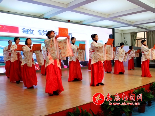 在“情系漢濱國培”文藝演出中,來自小學數學、小學語文、學前教育、中學語文、小學英語、中學英語、中學數學等培訓團隊的師生們自編自導自演,展示了快板《說唱漢濱國培》《聲律啟蒙》吟誦、歌舞《歡樂頌》、詩經串誦《美哉,詩經》、《英語歌曲串燒》、詩朗誦《國培后會有期》、歌舞《如火青春》、合唱《國培暢想》等節目。他們載歌載舞,且吟且誦,用多種文藝形式,展現了各個培訓團隊的風采與魅力,展示了培訓老師及參培學員良好的綜合素養。