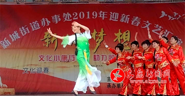 安康新聞網(wǎng)訊(通訊員 王穎 王潔)“歡天喜地迎小年,千家萬戶笑開顏”和著冬日暖陽,2019年1月28日下午,由漢濱區(qū)新城街道辦事處舉辦的“新城夢(mèng)想 文化小康行動(dòng)•助力脫貧攻堅(jiān)”2019年迎新春文藝匯演在香溪文化廣場(chǎng)隆重舉行。現(xiàn)場(chǎng)人頭攢動(dòng)、歡歌笑語,洋溢著一派喜氣洋洋的節(jié)日氣氛。