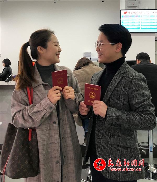 據(jù)統(tǒng)計,截至今日17時,漢濱區(qū)婚姻登記服務(wù)中心共有84對新人登記領(lǐng)證。