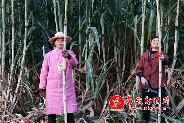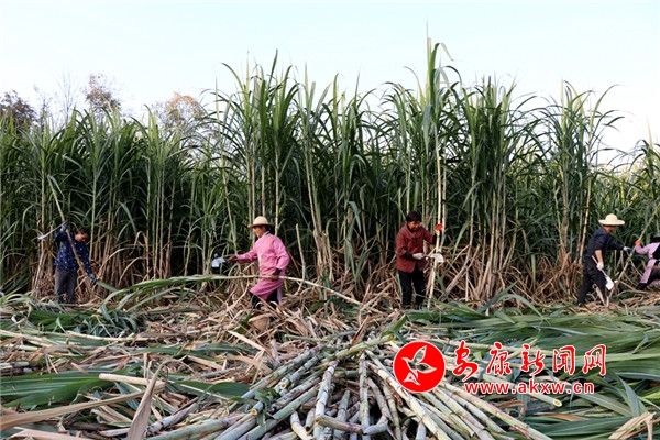 “今年的甘蔗大豐收啊,長得好的很。”正在采收甘蔗的村民陳開云說,“自從村上發展了甘蔗種植產業,我就在甘蔗基地務工,種甘蔗,收甘蔗,一天能掙上80元。”