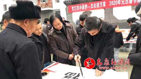 本網訊 (通訊員 惠星 郭仲艷)1月7日,“我們的中國夢”——文化進萬家陜西文聯文藝小分隊省美協志愿服務活動走進漢濱區雙龍鎮,為這里的群眾送上春聯、書畫作品。