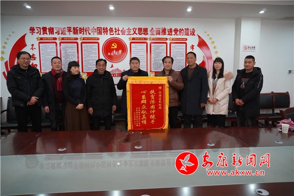 1月10日下午,漢濱區(qū)紫荊鎮(zhèn)沙壩村支部書記朱昌進一行將一面“扶貧濟困伸援手、心系群眾獻真情”的錦旗送到區(qū)民政局駐村幫扶工作組,真心感謝工作組對沙壩村的關(guān)心支持,感謝工作組心系沙壩村民冷暖、真情幫扶脫貧的深厚情義。