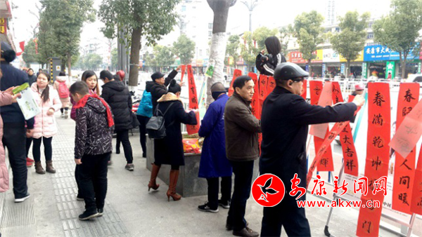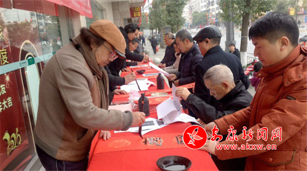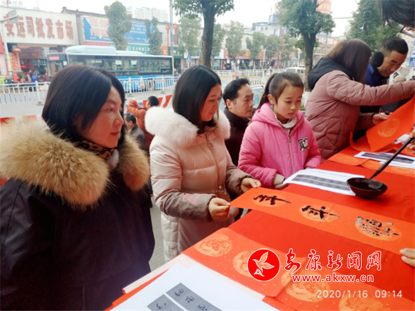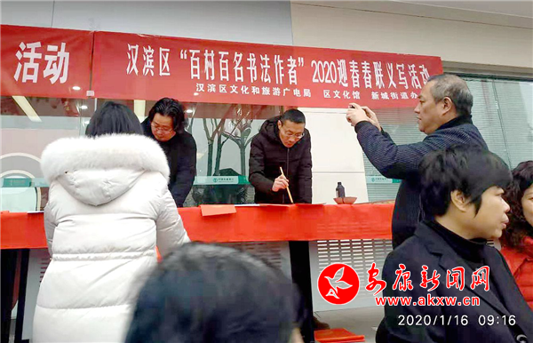 本網(wǎng)訊(通訊員 王艷 劉長(zhǎng)青 趙小順)“迎新春、貼春聯(lián)”是中華民族的傳統(tǒng)文化,突顯了年味民味,一副副精美的春聯(lián),蘊(yùn)含著辭舊迎新的美好祝福。2020年1月16日,漢濱區(qū)文化旅游廣電局、漢濱區(qū)文化館、新城街道辦分館在巴山中路舉辦“百村百名書法作者”義寫和2020年“文化小康行動(dòng)——萬(wàn)副春聯(lián)進(jìn)農(nóng)家”活動(dòng)。