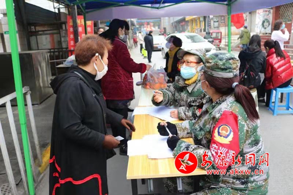 65歲的居民李紹郡是張溝橋社區義務巡邏隊的一員,自疫情爆發以來,主動報名義務站崗,佩戴著“治安巡邏”紅色袖標,站在社區防疫卡點排查外來人員,進行測量體溫、登記等工作,一遍又一遍地提醒群眾做好個人防護措施,格外投入。這樣的場景每時每刻都在江北辦的各個社區發生,一個個逆行英雄,接力一個個24小時,用平凡的身軀撐起社區“防疫墻”。