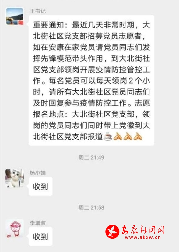 “一名黨員就是一面旗幟”。連日來,支部黨員紛紛踴躍報名加入到社區疫情防控工作隊伍中來,他們和大北街社區干部一道,不斷筑牢生命防線,讓黨旗在疫情斗爭第一線高高飄揚!