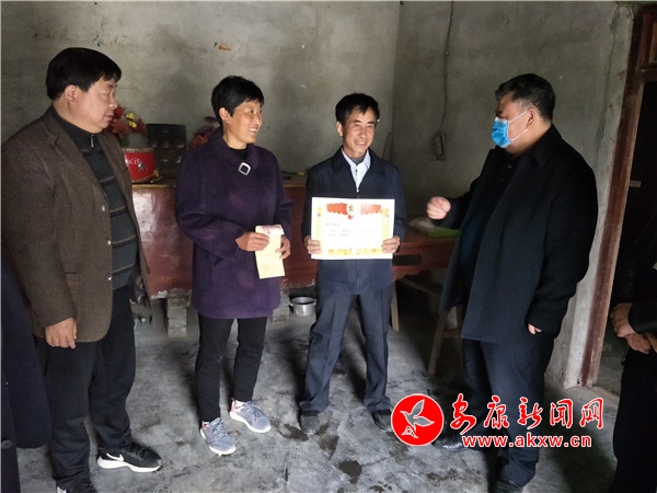 一人立功,全家光榮。馬澤興當眾宣讀了立功喜報,并將慰問金交到黃開波的母親手中,動情地說道:“黃開波不僅是咱們早陽鎮的驕傲,也是漢濱區的光榮,感謝你們為部隊培養了一名好軍官,希望你們繼續鼓勵他、支持他,讓他在部隊安心工作,再立新功,為家鄉增光添彩!”“你們教育培養了一名好兒子,祖國和人民感謝你們,希望你們一如既往地支持他工作,家里如果有什么困難,請告訴我們。”劉化波緊緊握住黃開波的父親的雙手說道。黃開波的母親張永蘭接過喜報激動地說:“今天我們非常高興,也很光榮,感謝政府對我們軍屬的關心和厚愛,他今天取得的成績離不開部隊的培養,也離不開家鄉父老的大力支持,希望他能在部隊取得更大的成績,報效祖國。”