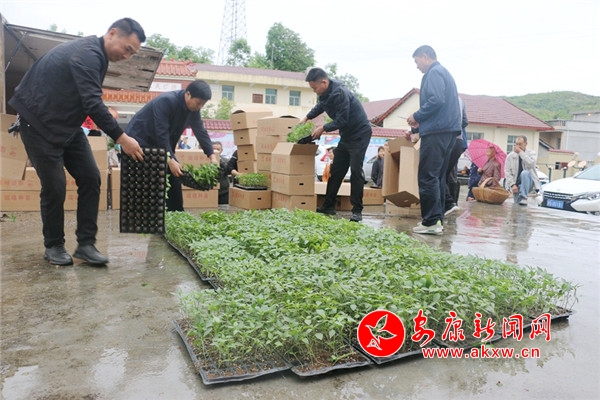 “ 朱世民4板尖椒、4板線椒、4板西紅柿…… ”上午十點,“扶貧四支力量”成員分工協助,搬運、登記、發放蔬菜苗,忙得不亦樂乎。領到蔬菜苗的農戶們,個個喜笑顏開。