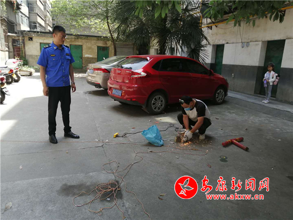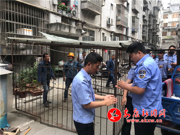 面對轄區的各種環境治理難題,鼓樓社區上下聯動,縱向請求支援,橫向詢求配合,聯合市住建局,環衛所,老城創建辦、兩違辦,社區民警開展了一系列整治行動。開展整治行動之前,采取“打招呼、講政策”的方式告知居民群眾,針對“三堆六亂”問題,聯合環衛所統一利用渣土車集中清理,針對小區私設“地樁”問題,口頭告知業主的同時,上報城管部門采取立即拆除措施。針對亂搭亂建問題,聯合老城創建辦、兩違辦限時拆除違章違建,針對下水管道口破損問題,采取填補硬化。