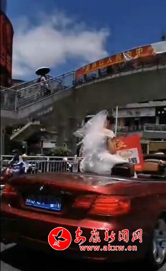 本網訊(通訊員 唐波)6月18日,漢濱公安分局交警大隊接到網友舉報稱:今天中午12點左右,在中心城區金州路有商家利用四輛敞篷轎車在道路上做巡游宣傳,車上的四位“新娘”均坐在后排中間部位,將身體伸出車外,存在妨礙安全駕駛的違法行為。