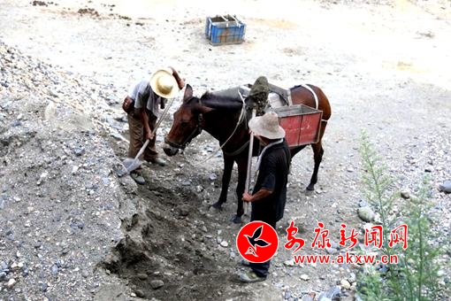 本網訊 (通訊員 唐紀創)盛夏,在漢濱區流水鎮石家河岸邊,鳳凰農民專業合作社的兩名工人忙著給騾子背上鐵框子裝砂石料,裝滿后,一名工人趕著兩頭騾子就上山了。