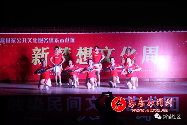 本網訊(通訊員 周登喜)為推進國家公共文化服務體系示范區建設,滿足群眾精神文化需求。漢濱區新城街道辦“新夢想文化周”文藝匯演活動如火如荼進行中,新鋪社區映染民間文化藝術團在第三場演出中閃亮登場,現場500多名群眾觀看了本次演出。