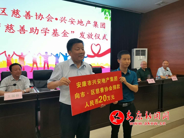 本網訊 (通訊員 朱駿 胡楊陽)9月11日,安康市及漢濱區慈善協會攜手興安地產集團舉行2020年“慈善助學基金”發放活動,為漢濱區40名家庭困難大學新生每人發放助學金5000元。安康市慈善協會會長崔光華、漢濱區委副書記陳華出席活動。
