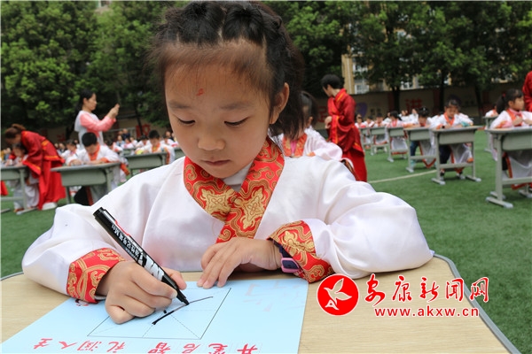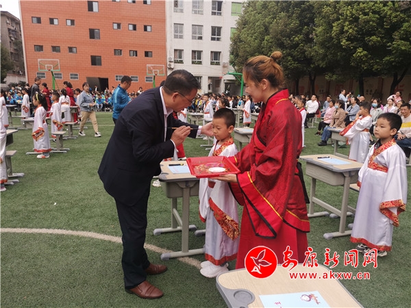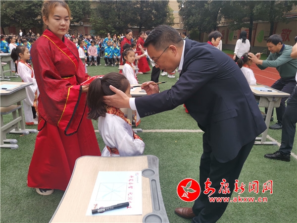 為讓一年級新生領略到中華民族傳統文化的魅力,9月23日上午,漢濱區江南小學攜手安康市博物館文廟管理所,隆重舉行了一年級新生“開筆禮”儀式,322名一年級新生開筆習禮學寫“人”字。開筆禮環節由安康文廟禮儀官趙琨主持。分為正衣冠、感恩鞠躬、朱砂啟智、擊鼓明志、啟蒙開筆等環節。通過系列活動,一年級新生感受到了知識及傳統文化的神圣,做“勤奮好學、端正品行、知書識禮、尊敬師長”好少年的美好愿望已逐漸在孩子心田生根發芽。(劉改/圖文)NBv安康新聞網