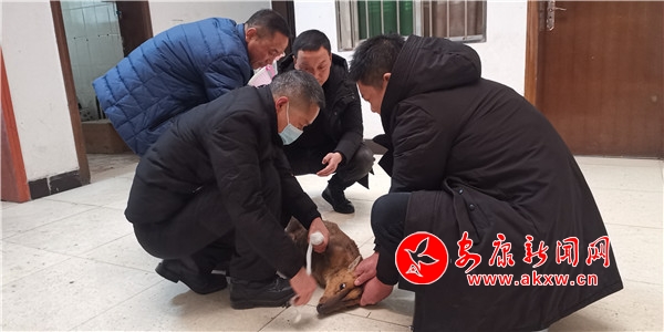 接到報(bào)告后,大竹園鎮(zhèn)派出所、農(nóng)綜站、綜合執(zhí)法辦公室三部門聯(lián)合出動(dòng),迅速趕往現(xiàn)場(chǎng),通過(guò)現(xiàn)場(chǎng)比對(duì)鑒定,發(fā)現(xiàn)這只小動(dòng)物是國(guó)家二級(jí)野生保護(hù)動(dòng)物麂子。為穩(wěn)定麂子傷情,工作人員現(xiàn)場(chǎng)進(jìn)行了傷口處理,并將其帶回鎮(zhèn)農(nóng)綜站邀請(qǐng)獸醫(yī)進(jìn)行診治。