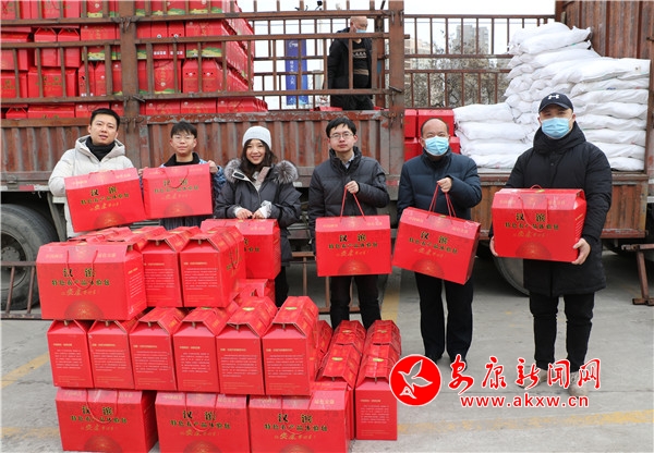 本網訊(吳亞君 胡楊)1月6日,漢濱區優質農產品進高校直通車消費扶貧活動走進陜西開放大學(陜西廣播電視大學)郭杜校區,將價值30萬元的689份漢濱特色農產品體驗包送到該校教職工手中。4vu安康新聞網
